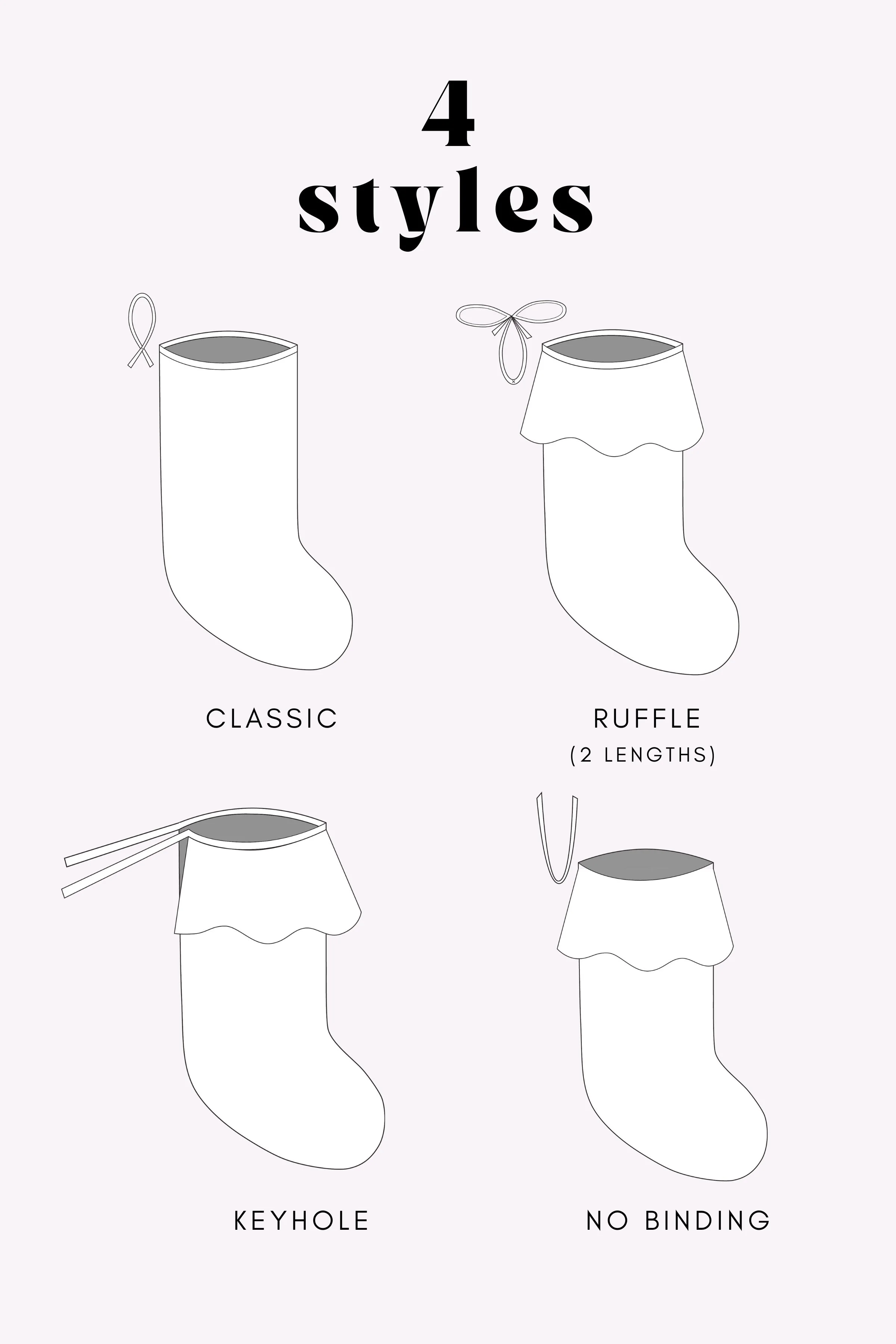 Pretty much covers all the different variations for a classic stocking. The only problem I had was deciding which one to make - I keep falling in love with more fabric and feel drawn to sew MORE.
